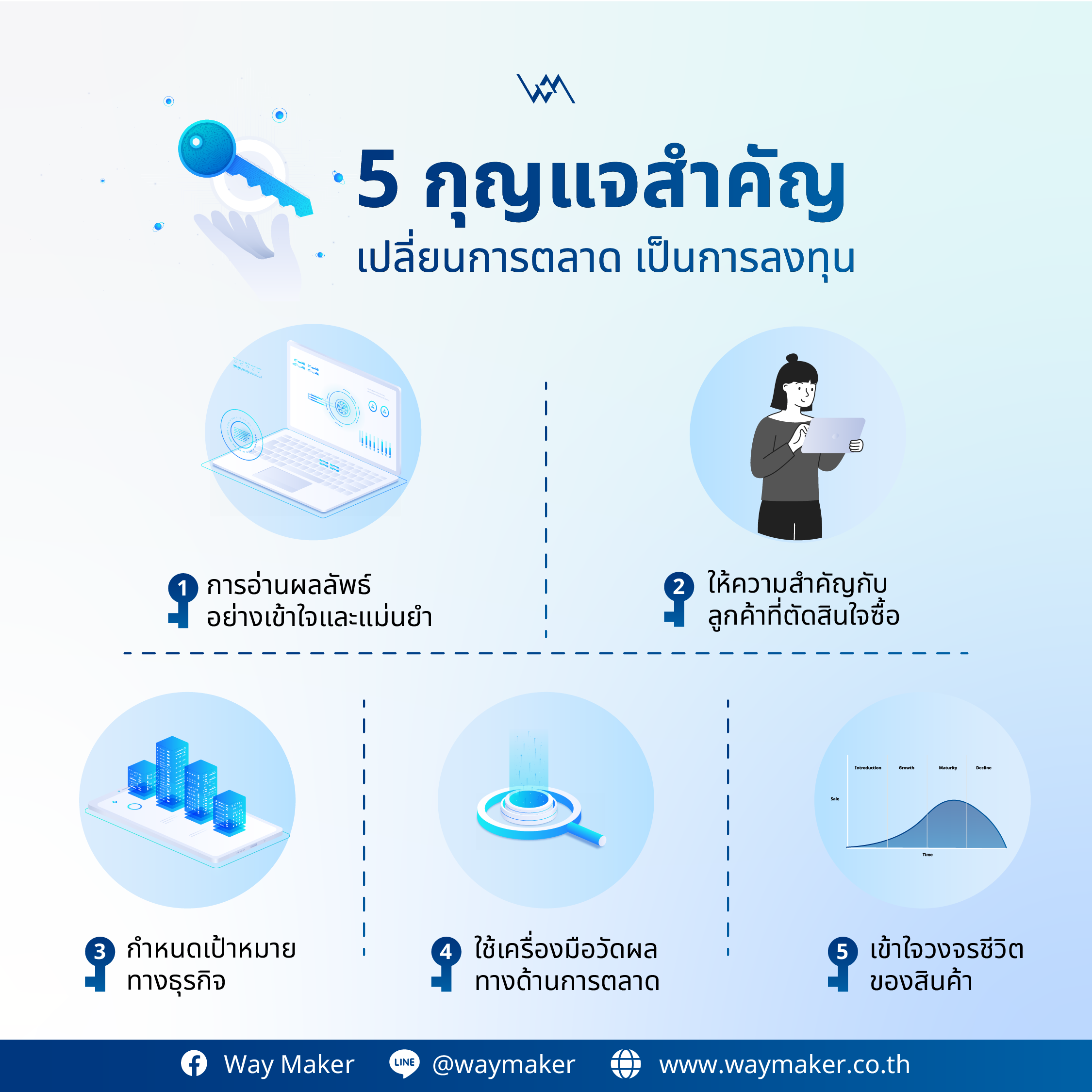 การตลาดยุคใหม่ไม่ใช่แค่การใช้จ่ายเงินไปกับการโฆษณา แต่เป็นการลงทุนที่มีเป้าหมายชัดเจน มีกระบวนการที่เป็นระบบ และมีความสามารถในการปรับตัวอยู่เสมอ. การเข้าใจและประยุกต์ใช้ 5 กุญแจสำคัญนี้ จะช่วยให้คุณสามารถวัดผลลัพธ์ของ MROI ได้อย่างชัดเจน เข้าใจเหตุและผลของความสำเร็จ และนำไปสู่การเพิ่มมูลค่าของธุรกิจ การได้รับผลตอบแทนจากการขายที่มากขึ้น และการเติบโตอย่างยั่งยืนในระยะยาว. จงจำไว้ว่า "การตลาด = การลงทุน" ที่คุณสามารถควบคุมและพัฒนาให้ดีขึ้นได้เสมอ